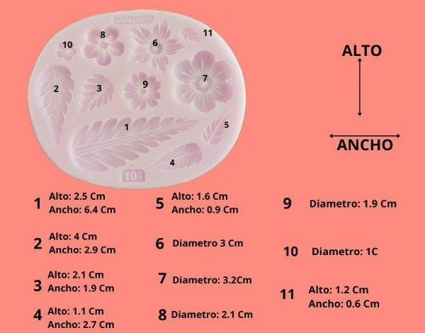 Las medidas del molde corresponden a las especificadas en la imagen ilustrativa.